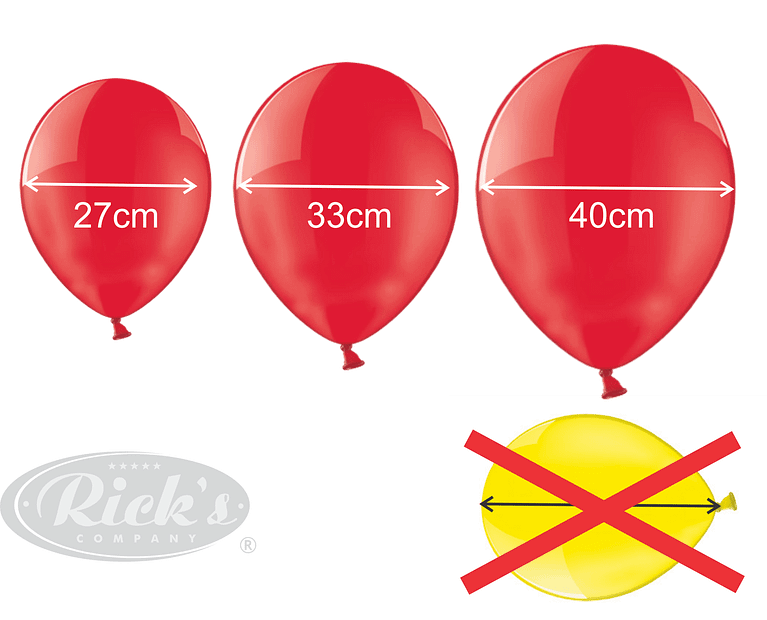 Les tailles de ballons sont parfois renseignées de manière trompeuse. Chez Rick’s nous vous communiquerons toujours le diamètre du ballon et non sa hauteur :