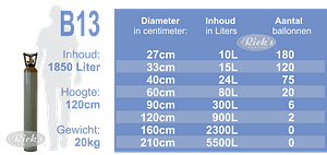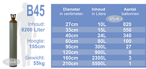 Rick’s Ballongas is samengesteld uit helium met een klein percentage stikstof erin. Dit gas is lichter dan lucht en doet uw ballon de hoogte in gaan. Afhankelijk van de kwaliteit en grootte van de ballon, blijft deze een aantal uren of dagen in de lucht.